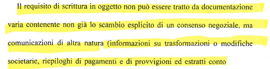 La giurisprudenza della Corte di Cassazione è poi consolidata nel ritenere che non possa essere fornita prova dell’esistenza del contratto di agenzia nemmeno per mezzo di elementi scritti, quali estratti provvigionali, fatture, listini prezzi e simili, estranei dal vero e proprio scambio di volontà negoziale.